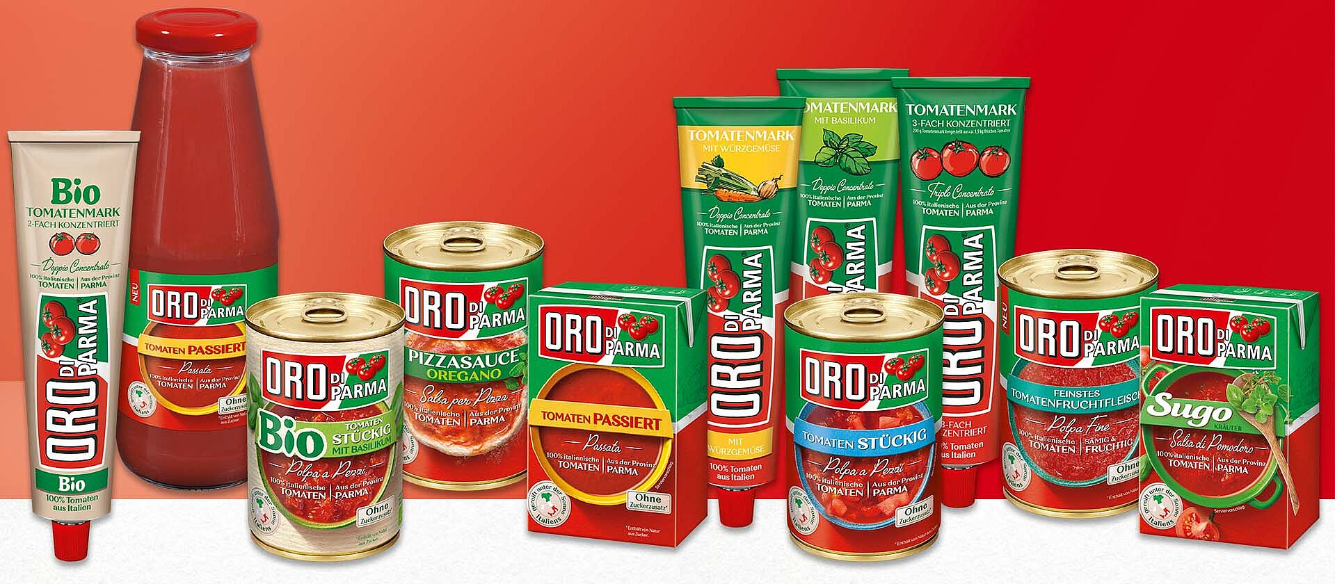 Our ORO di Parma products are also available in organic quality! From 100% controlled organic cultivation and with sun-ripened tomatoes from the Parma region in Italy.